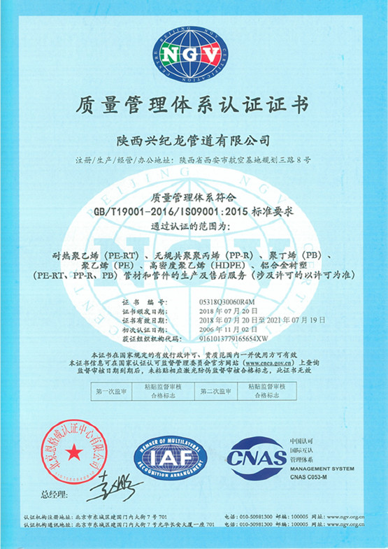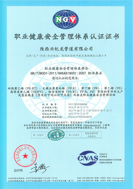 北京恩格威認(rèn)證中心有限公司于2018年7月5日、6日對(duì)陜西興紀(jì)龍管道有限公司進(jìn)行了為期二天的體系認(rèn)證審查,通過(guò)審查對(duì)我公司的各項(xiàng)管理工作給予了肯定,并順利通過(guò),目前三證已正式換發(fā)。